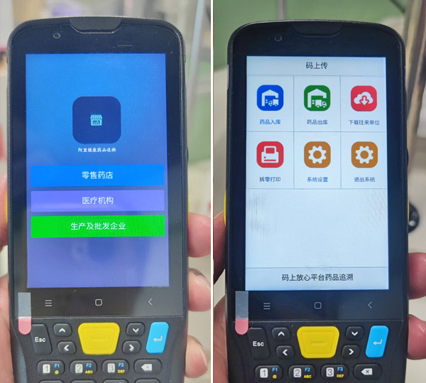 2、扫码操作:PDA上打开药品追溯APP,一键下载“往来单位”,然后选择“入出库类型”》选择“往来单位”》扫码 》一键上传,效率较手工录入提升5倍。